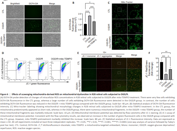 Figure 6 | Effects of scavenging mitochondria-derived ROS on mitochondrial dysfunction in R28 retinal cells subjected to OGD/R.