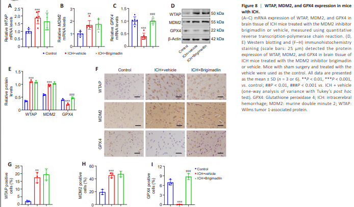 Figure 8 | WTAP, MDM2, and GPX4 expression in mice with ICH.