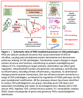 Peptidylarginine deiminases and extracellular vesicles: prospective drug targets and biomarkers in central nervous system diseases and repair